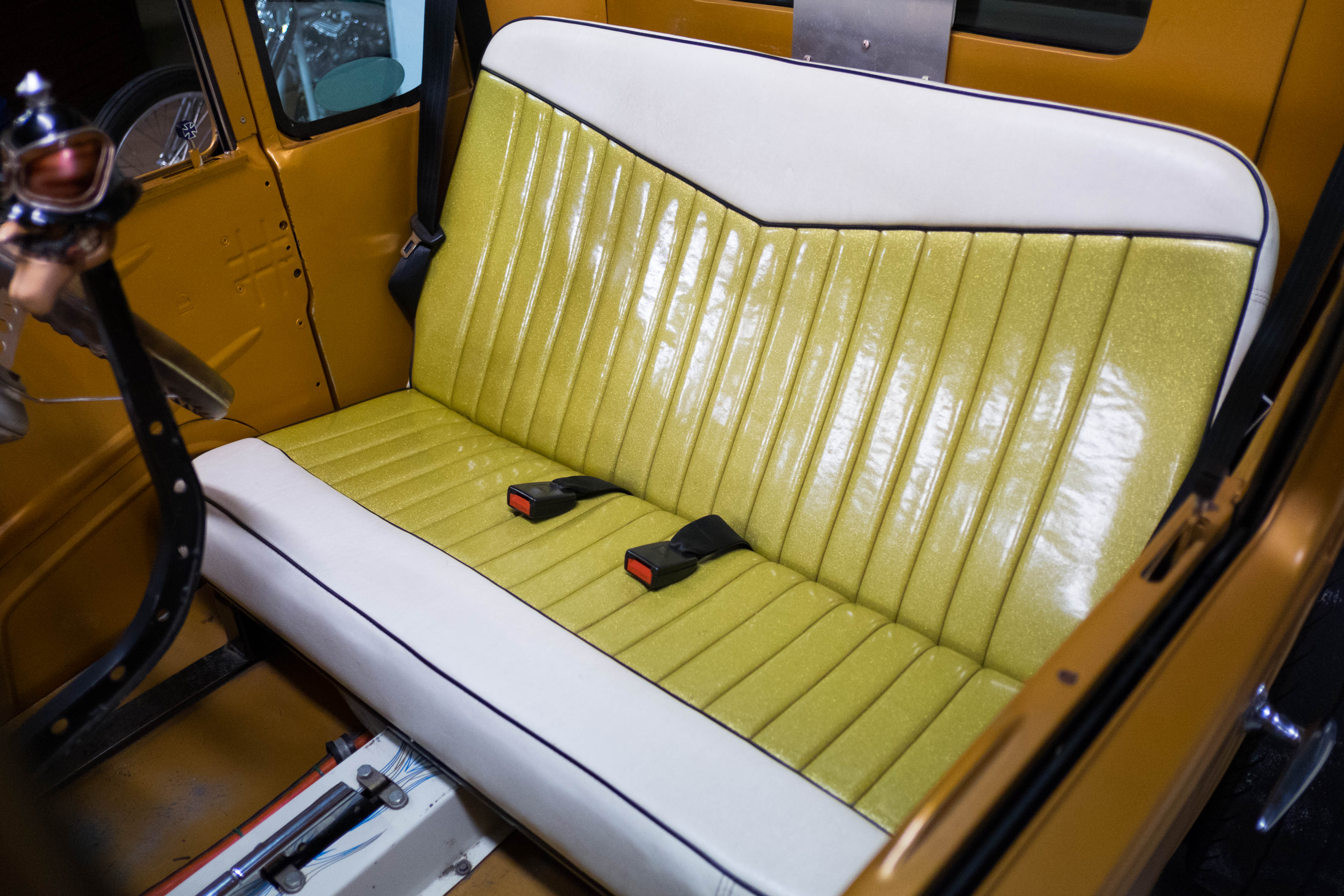 We completed a bench seat trimming for Ben’s 1927 Ford T-Coupe hotrod. We also renewed the ragtop. It’s a classic hotrod design and deserved a classic style of upholstery. We think it came out pretty cool.